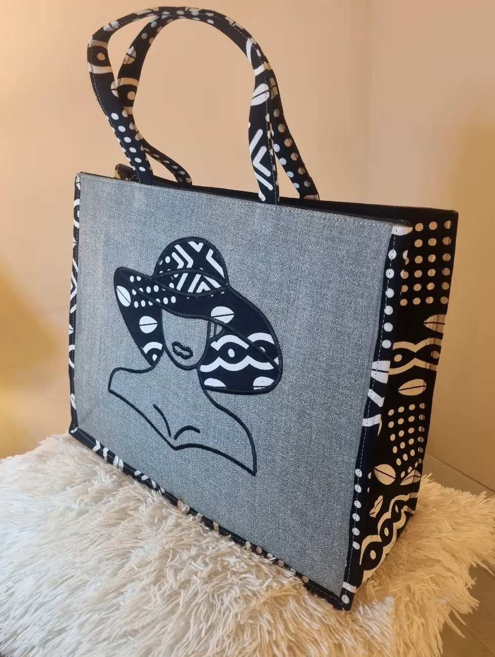 Cabas spacieux pour les courses ou la plage alliant modernité et culture. Il reflète un style ethnique chic, parfait pour celles qui veulent alliet élégance, engagement et originalité.